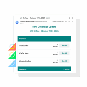 Onclusive 360 puts the world’s earned media coverage at your fingertips. The self-service media monitoring platform gives instant access to billions of stories. Write your own queries, track historical coverage, and generate reports on demand.