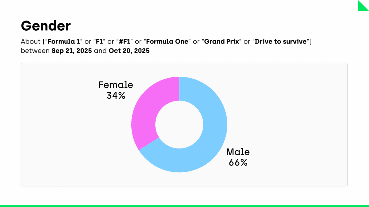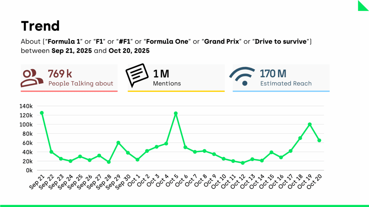 Según datos de Onclusive Social (21 sept – 21 oct 2025), la Fórmula 1 generó:
